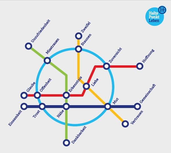 Unsere Arbeit ist "passager" - im Vorübergehen. Wie können wir Menschen einfach im Vorbeigehen einen kleinen Gedanken mit auf den Weg geben? Das war die Frage, die uns zur Entwicklung des Haltepunkts Leben führte.